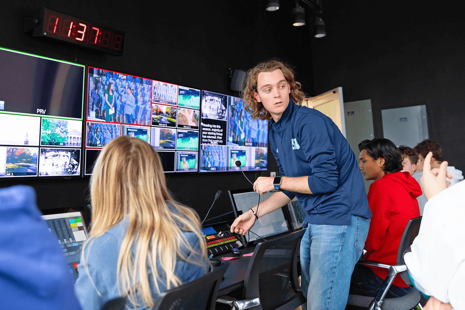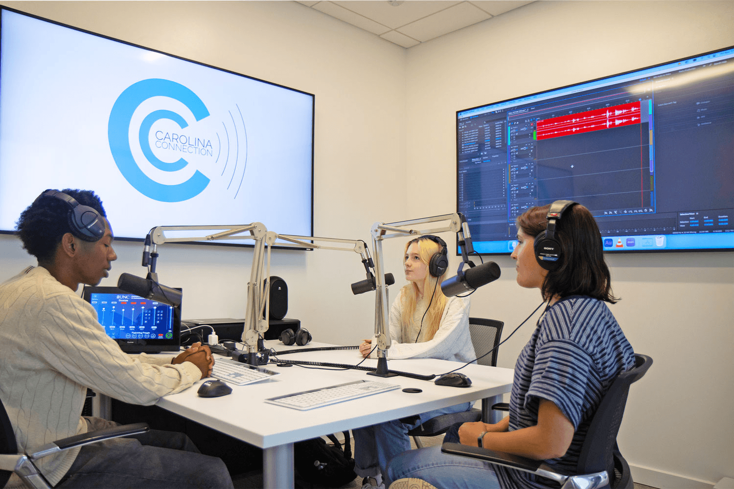 A fiber connection between Curtis Media Center and UNC Athletics facilities, including the Dean Smith Center arena, home for the UNC Chapel Hill Tar Heels basketball team, allows the broadcast studio to originate programs like Sports Xtra. Sports Xtra is a student-produced show featuring sports highlights, analysis, and commentary. Students also produce the live news program Carolina Now, which keeps UNC students, faculty, and staff informed about what’s happening on campus, around town, and around the world. Both shows live stream on Facebook and YouTube. Check out the opening minutes of recent broadcasts in the Featured Video in this article's sidebar at right.
