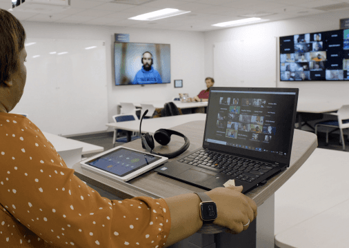 Advanced Remote Engagement: The back-end system allows educators to break students into multiple Zoom Rooms. This enables remote students to see, hear, and interact directly with the educator and their in-person peers.